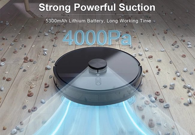 - 5000Pa suction powerful makes clean-up easier by this robot vacuum.